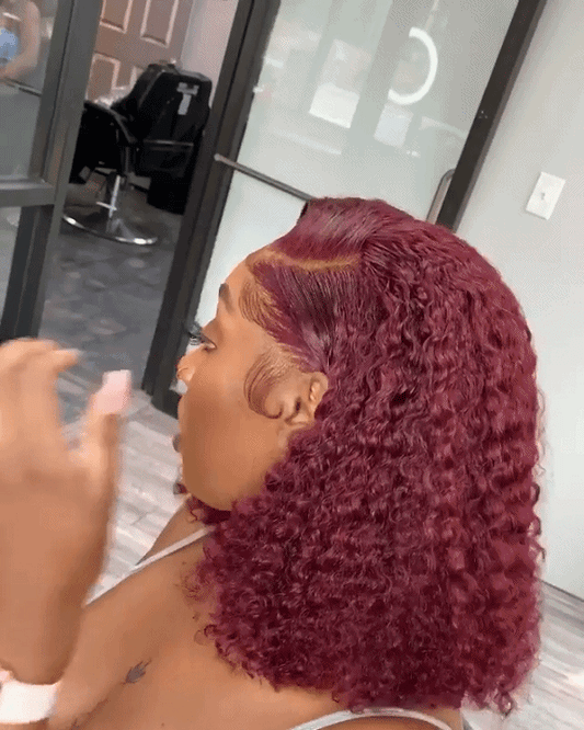 Wine Red Short Bob Hair Curly Wig