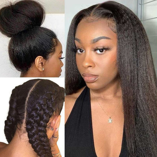Kinky straight 200% density glueless brazilian black wigs with baby hair