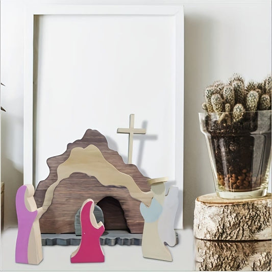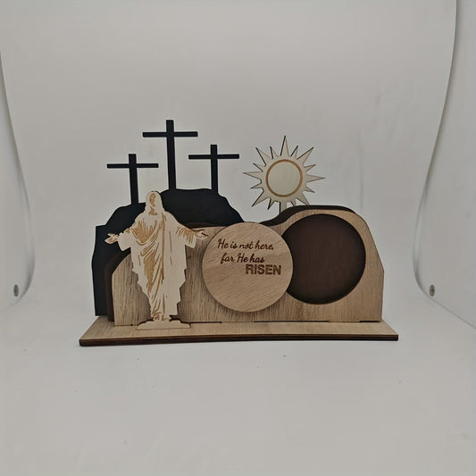 Christianartworkshop 7pcs/set "He Has Risen" Jesus Cross Wooden Easter Dekstop Decor Ornament