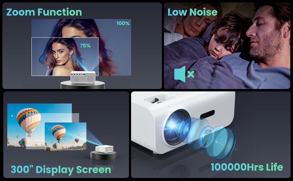 - Massive Projection Size – Up to 300 Inches - Turn any room into a theater with a projection range that scales up to 300", providing flexible screen size adjustment to fit your space and viewing preferences.