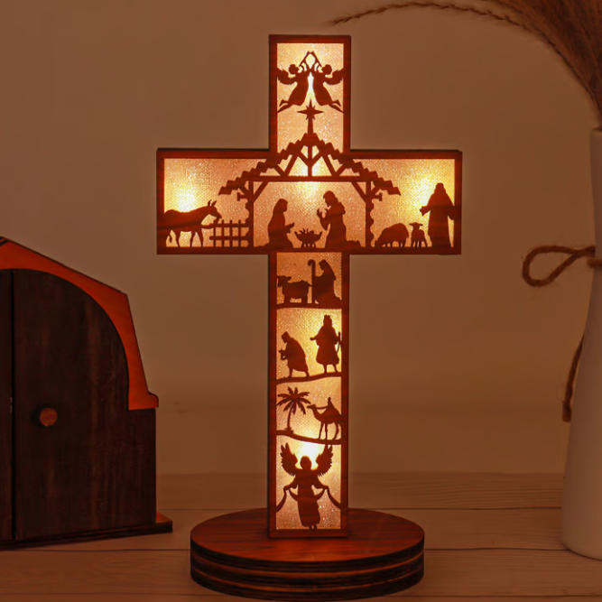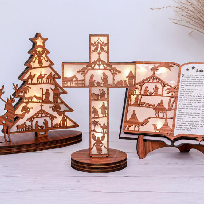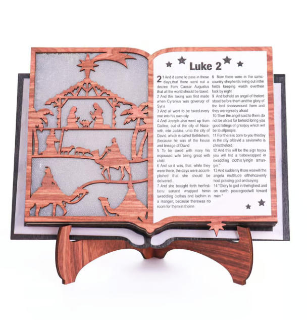 3D Wooden Nativity Scene Book Display With Light