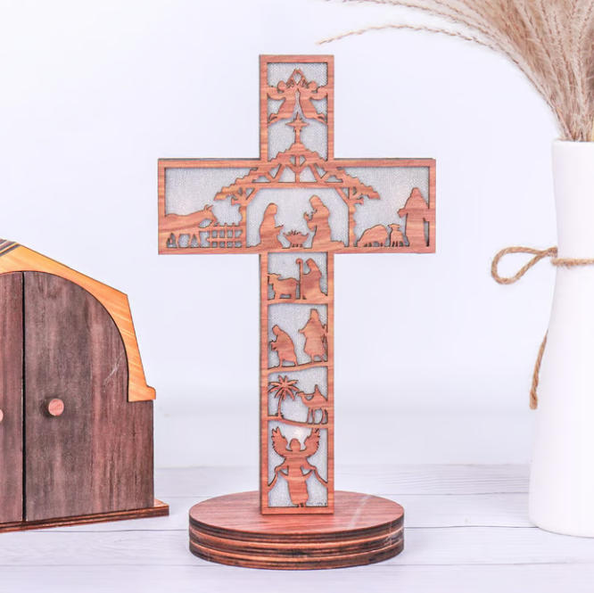 Whether you're an avid collector of Christmas decor or simply seeking a striking focal point for your holiday celebrations, our 3D Wooden Handmade Nativity Scene Shelf Sitter Book Display is a true work of art that radiates the magic of Christmas throughout your home. Embrace the spirit of the season and elevate your holiday decor with this exquisite piece of handcrafted beauty.