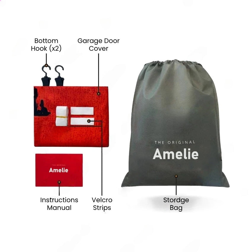 Every Amelie cover now comes with a FREE upgraded installation kit that includes stitched-in flat elastic bands for the bottom corners and Velcro rolls for the top. Simply stick the top of the cover to your door using Velcro, hook the elastic bands to the second hinge behind your garage door, and voilà—you’re ready to impress your neighbors with one of the best festive garage door cover displays around.