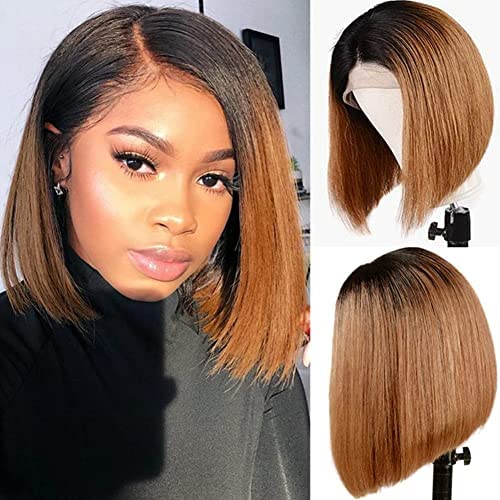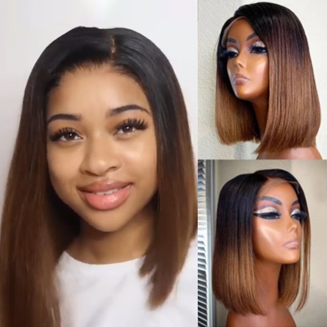 Black Gradient Light Brown Brazilian Straight Hair BOB Wigs Lady Wig