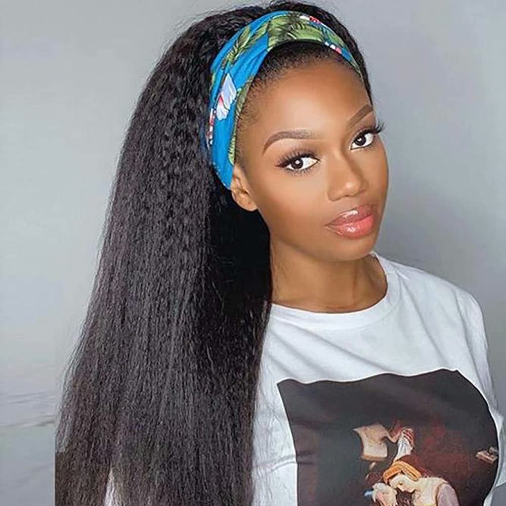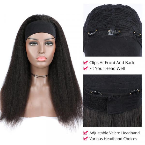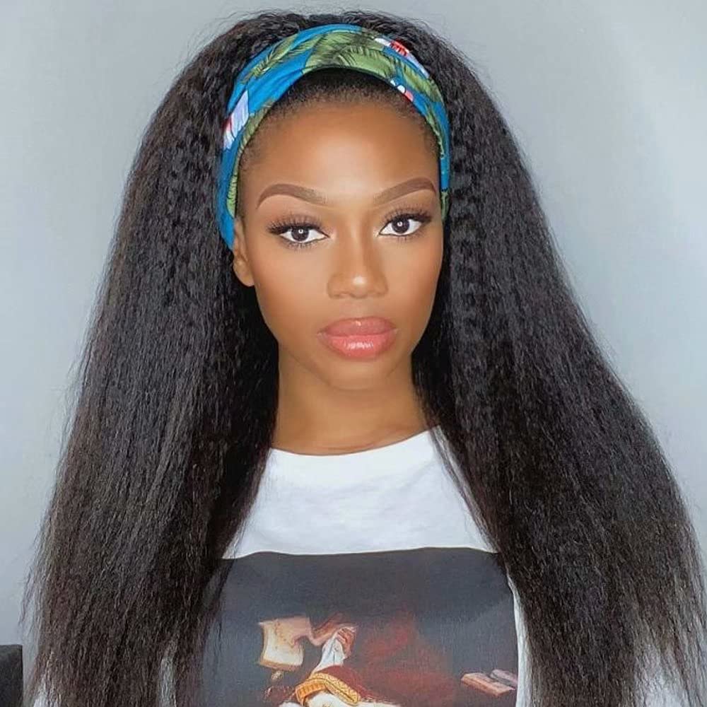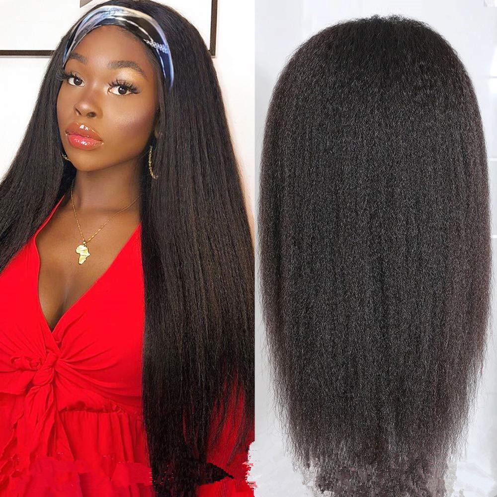 Black Kinky Straight Long Hair Headband Glue Less Wig