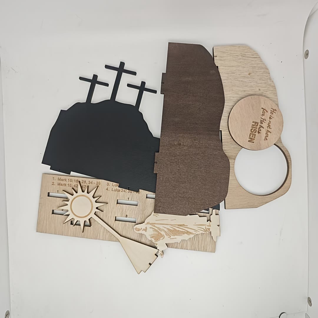 Christianartworkshop 7pcs/set "He Has Risen" Jesus Cross Wooden Easter Dekstop Decor Ornament