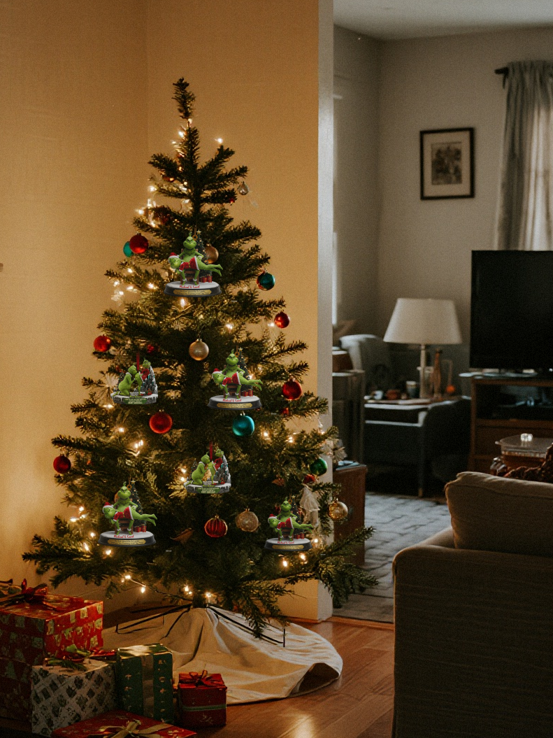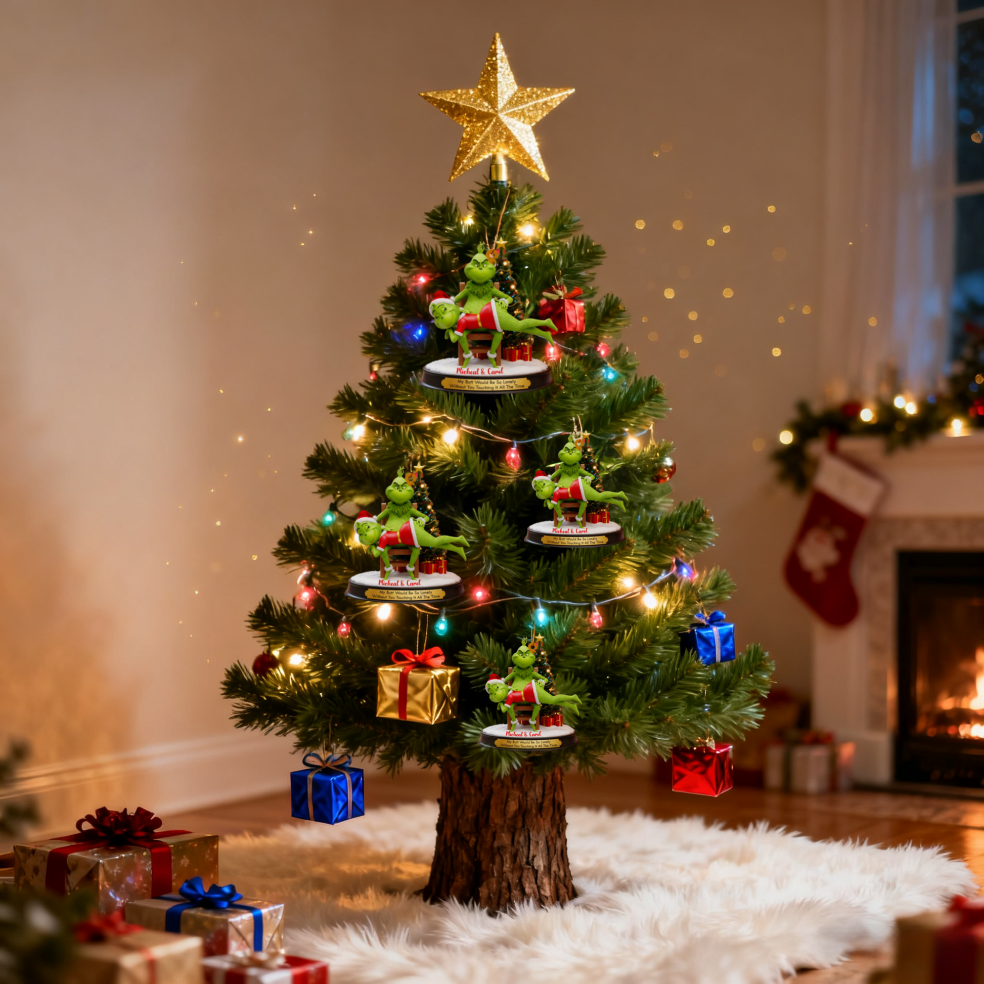 Premium Quality Craftsmanship: Each ornament is crafted from high-quality, durable PVC or acrylic. They feature a vibrant, full-color print that captures all the iconic green charm and are finished with a glossy, glitter-dusted surface that sparkles beautifully under your Christmas tree lights.