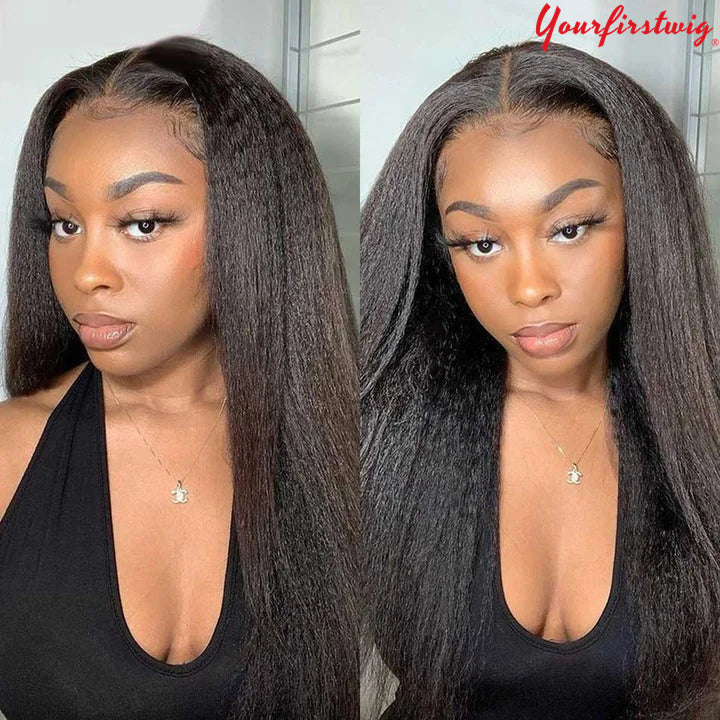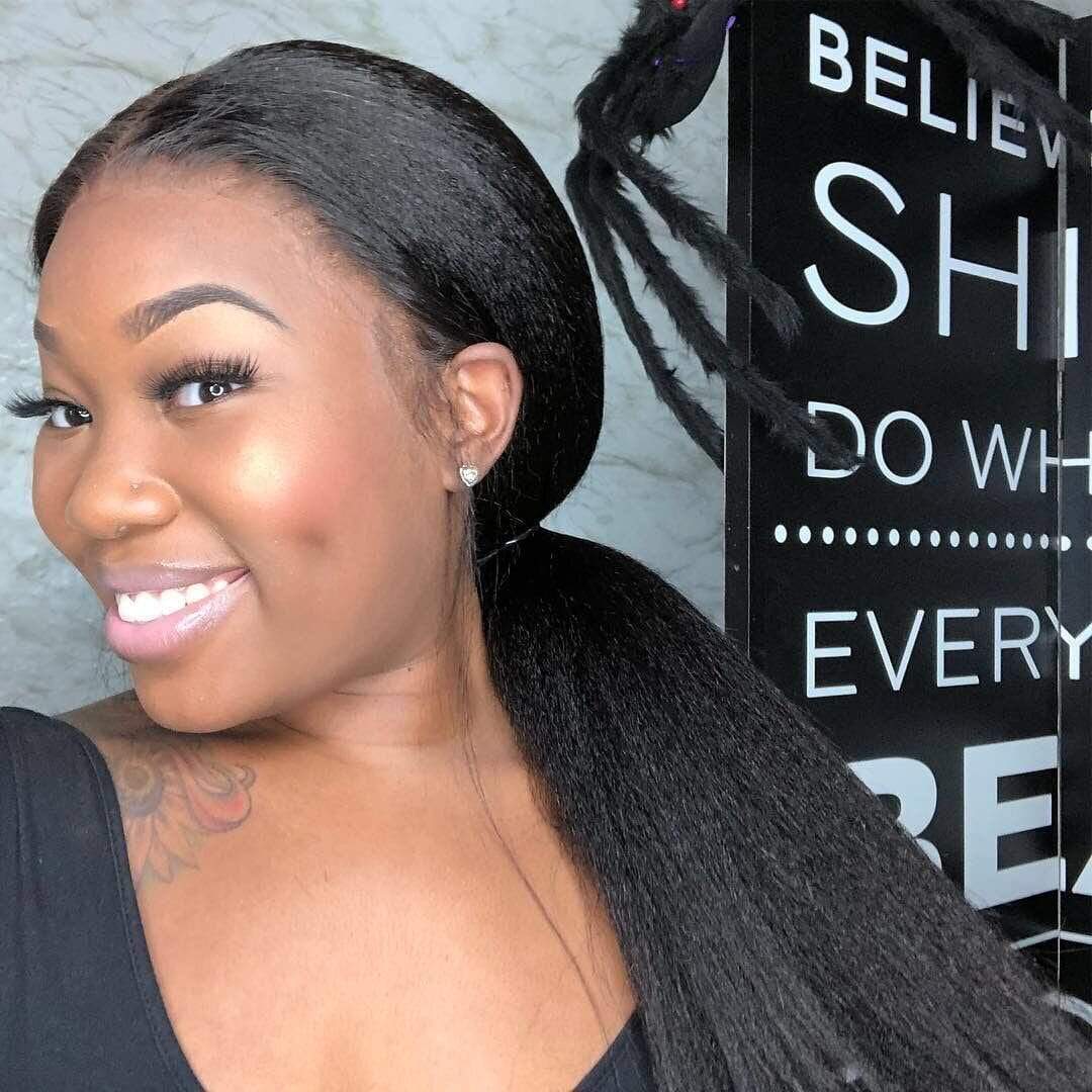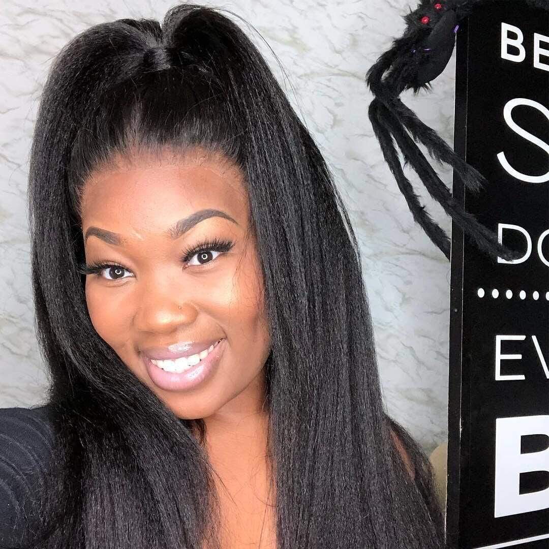 Kinky straight 200% density glueless brazilian black wigs with baby hair
